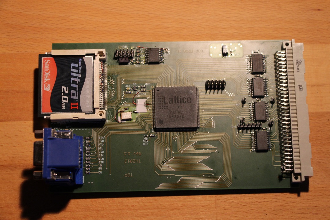Hier die VGA 2 von TorstenDaten der Karte Europakarte 160 x 100 mm 4 Lagen (2 Supply Planes) FPGA: LFXP6C-3QN208C in der HW-Version 1.x FPGA: LFXP2C-8E-5QN208C in der HW-Version 2.x ECB-Bus (8/16-bit) Betriebsspannung 5V Adressraum voll ausdekodiert 1MB SRAM (8/10ns – z.B. CY7C1041CV33) , 2MB mit LFXP2C VGA/GDPFPGA SD-CARD CF-CARD/ATA PS2Mouse/Keyboard RS232 AUDIO Ethernet (LFXP2C)