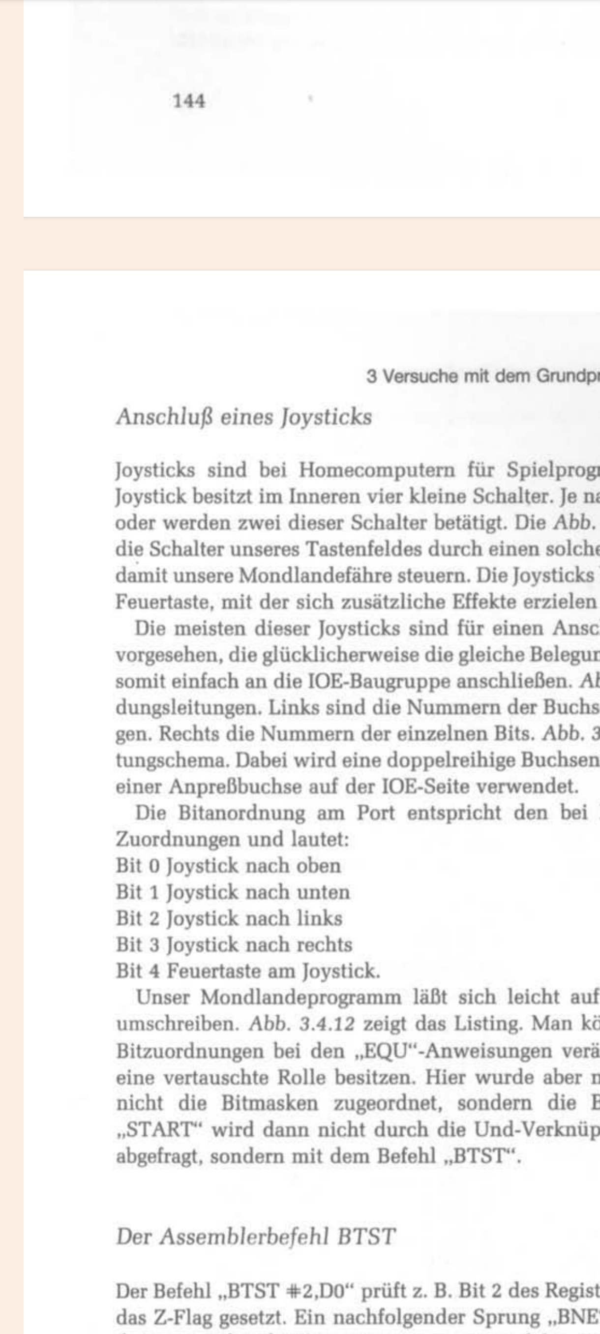Meiner Meinung nach stimmt das nicht mit dem Buch S.145 überein. ![]() Das im Buch müsste doch dem entsprechen: hoch - FE 11111110 runter - FD 11111101 links - FB 11111011 rechts - F7 11110111 Feuer - EF 11101111 ... oder ... und bevor ich jetzt wieder alles "umtüdel" wäre die Frage was stimmt denn nun.Schöne Grüße ----------------------- 68008/GDP64HS/BootRAM68k/KEYr4/IOEenh mit 2xSD-Karte/Sound3/UHR3/IOEenh mit Joystick/BUS3 |
